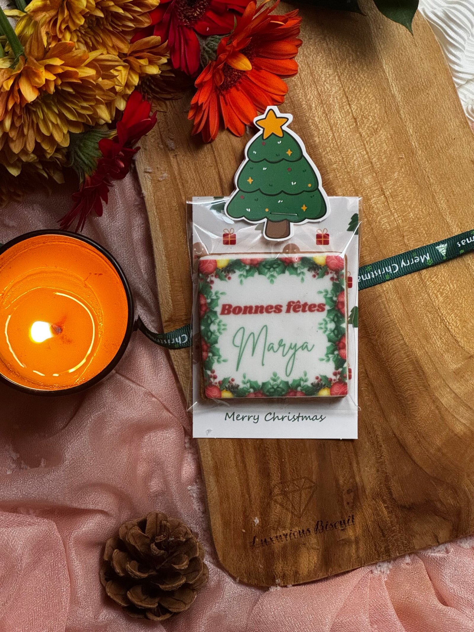 Un petit sachet individuel contenant un biscuit, personnalisé avec le prénom ou le message de votre choix.